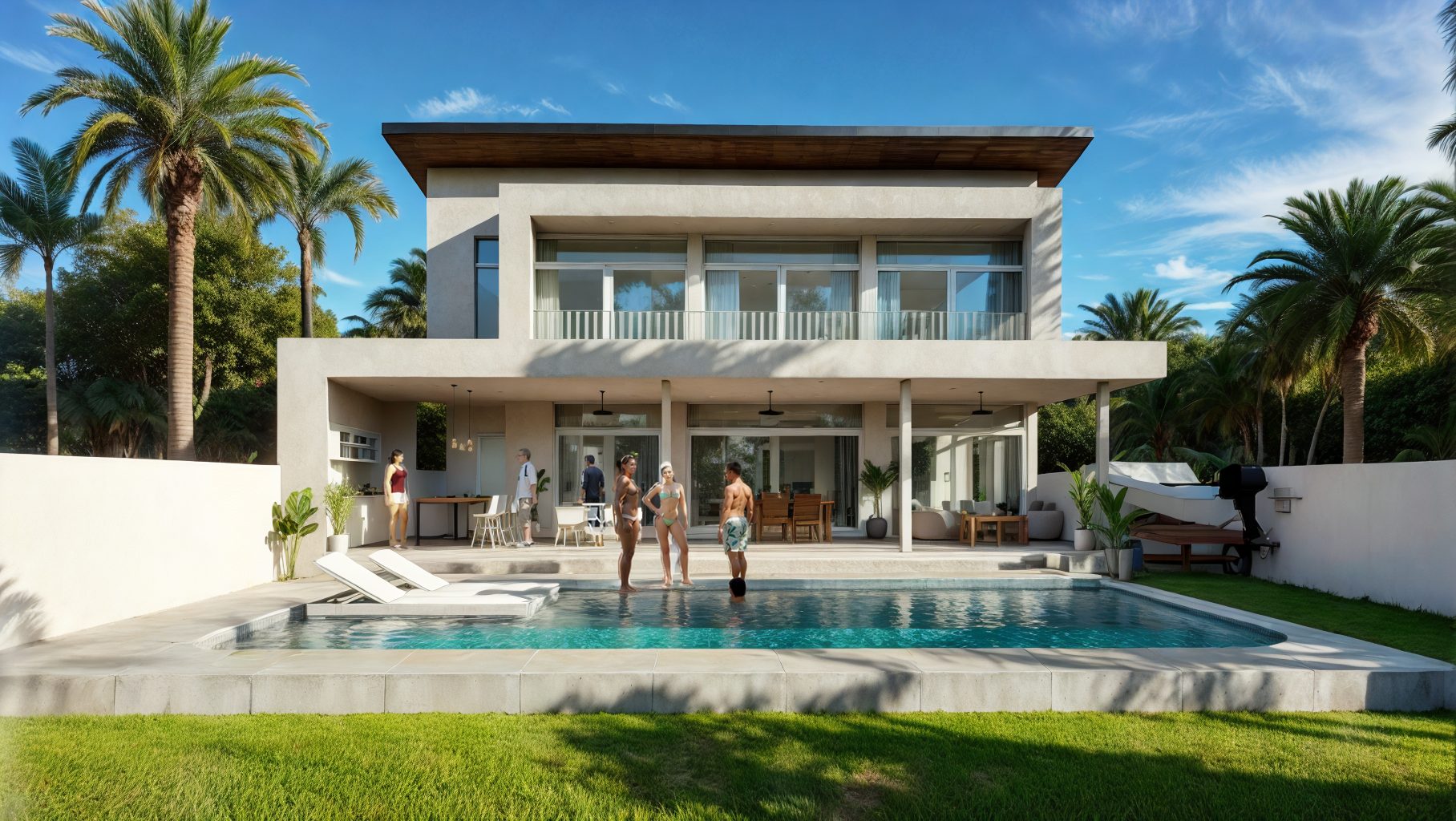 • Área de barbacoa integrada al diseño exterior, ideal para actividades sociales junto a la piscina.